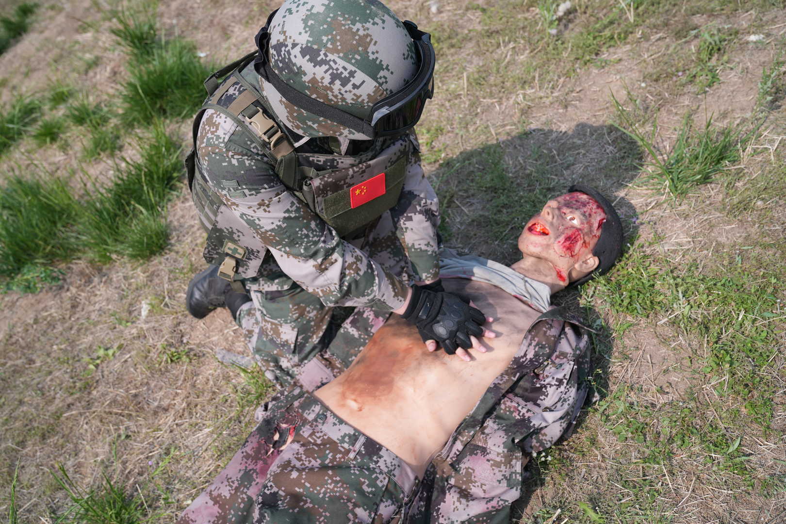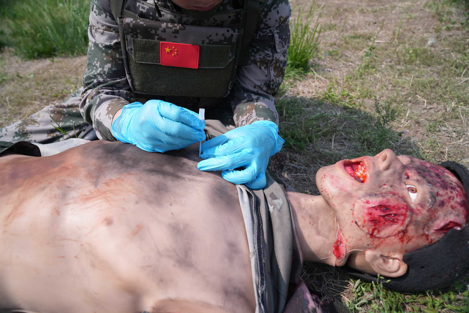 1)  Multiple bleeding sites and injury factors simulation with remote control including facial bleeding, scalp avulsion, neck bleeding, shoulder bleeding, forearm bleeding, palm bleeding, abdominal bleeding with intestinal leakage, calf bleeding, dorsalis pedis bleeding, thigh amputation bleeding, etc.