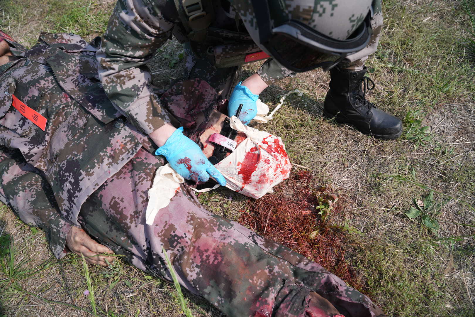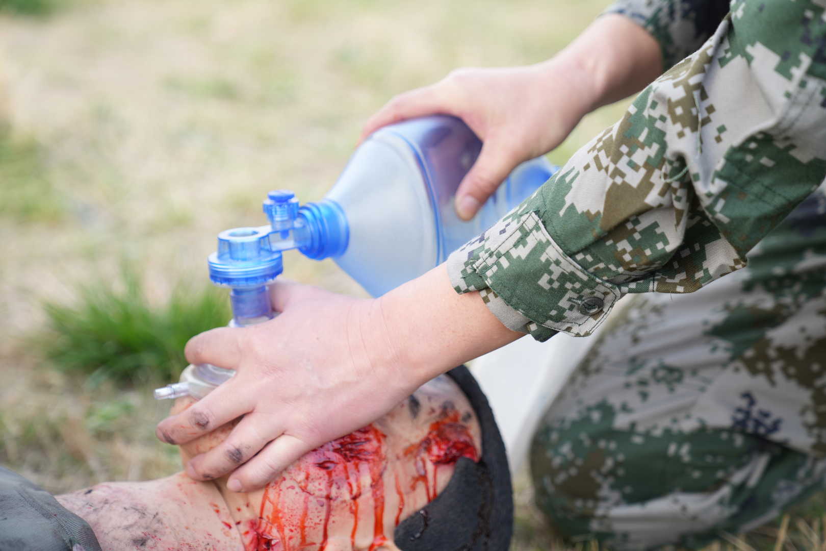 2)    It can simulate fresh wound bleeding of amputated limbs caused by explosions. The traumatic stress reaction of legs can be seen and unconscious movement occurs. The hemostasis can be achieved by applying a tourniquet.