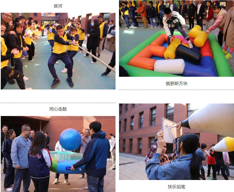 本次运动会共有300余名员工积极参与,根据所属体系划分为四只参赛代表队,分别为代表研发体系的“创新”一队、生产体系的“争先”二队、支持体系的“超越”三队以及销售体系的“巅峰”四队。运动会共设置12项比赛项目,其中包括6项个人项目及6项团体项目,6项个人项目分别为跳绳、仰卧起坐、踢毽子、跑步、你抖我抖、手忙脚乱,团体项目分别为啦啦队比赛、拔河、俄罗斯方块、同心击鼓、快乐铅笔、不倒森林,均以传统项目及趣味项目相结合的方式进行,首先进行的项目为团体项目啦啦队比赛,比赛现场气氛热烈,趣味横生。